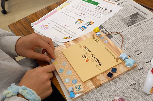 当日は、カレンダーや暦について学ぶ講座を行った後、福井県産杉の端材を活用した木製カレンダーボードに、鯖江産めがねフレームの製造過程で生まれるチップや越前織のリボンなど、県内の多彩な素材を組み合わせて自由にデコレーションできるワークショップを実施しました。本活動を通じて、多くの皆さまに日本の伝統文化の一つであるカレンダーの有用性を伝えるとともに、未来を担う子どもたちに向けて、日本ならではの豊かな文化や、ものづくりの楽しさを伝えていく取り組みを積極的に行ってまいります。