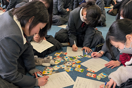 今回の授業では、1年生2クラスを対象にボードゲーム「ふくい温暖化クライシス」を利用した授業を行い、子どもへのサポートをさせていただきました。「ふくい温暖化クライシス」は福井未来人材育成プロジェクトで作成した遊びながらSDGsを学べるボードゲームです。温暖化の現状、これから私たちにできることを少しでも知っていただき、興味を持ち理解が少しでも深まる手助けになるよう活動していきたいと思います。また、今回は企業のSDGs活動について学生の皆さんに知っていただき、弊社スタッフと交流する新しいプログラムを行いました。